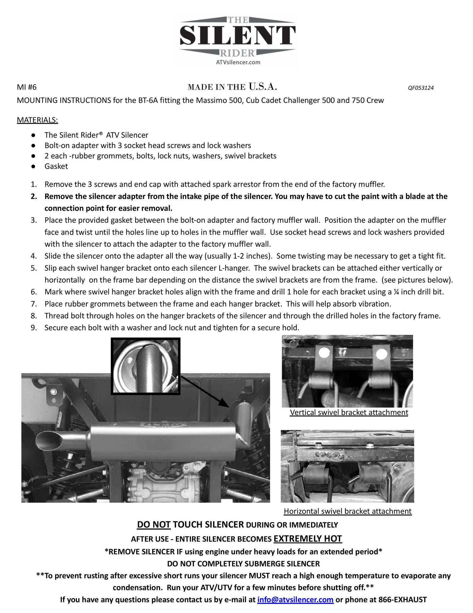 The adapter will not damage the engine or affect the flow of the exhaust. the Silent Rider will pressure fit onto the adapter. Once the sturdy mounting brackets are properly secured, the installation is complete!